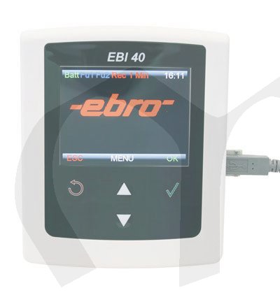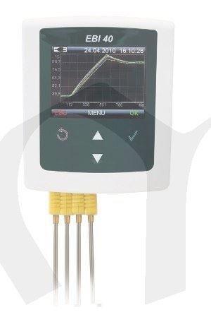 EBI40 je vícekanálový záznamník teplot s grafickým displejem pro zobrazení aktuálních nebo zaznamenaných dat. Záznamník obsahuje dva USB porty, jeden pro připojení k počítači, druhý pro připojení USB flash disku pro stahování dat bez PC. Volitelně je možné záznamník dodat s LAN konektorem pro přímé připojení do počítačové sítě.