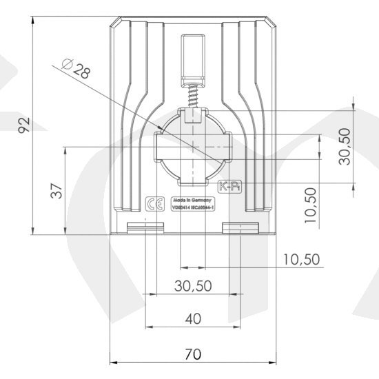 Kruhový otvor průvlečného trafa 28 mm