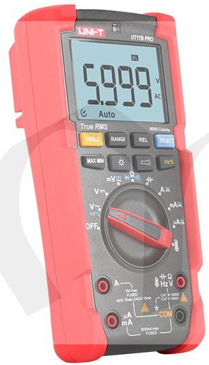 Digitální multimetr UT17B PRO 1000 V True RMS je vysoce spolehlivý, bezpečný a odolný multimetr, měřící skutečné hodnoty RMS, určený i pro měření v rozvodných zařízeních kategorie CAT III 1000 V / CAT IV 600 V. Multimetr je vybaven vestavěným filtrem VFC a dokáže odfiltrovat rušení vznikající například na měničích napětí, což vede k přesnějšímu odečtu napětí.
