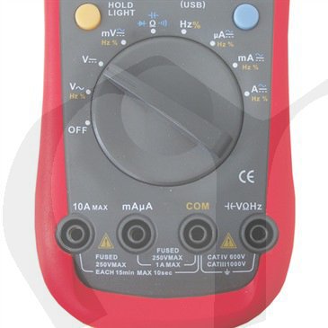 Víceúčelový multimetr je přenosný digitální přístroj se zdokonalenou konstrukcí a přehledným displejem. Součástí dodávky je baterie 6F22,měřící hroty, optický propojovací kabel a software. Přístroj má optoelektronické rozhraní RS232C, které zaručuje absolutní bezpečné galvanické oddělení měřícího přístroje od Vašeho počítače, jenž je tímto chráněn před poškozením měřícím napětím.