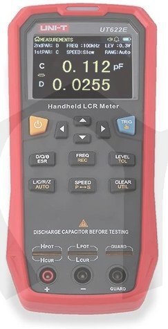 Přístroj UT-622E LRC je ruční měřič součástek - cívek (indukčnosti), rezistorů (odporu) a kondenzátorů (kapacity), obecné impedance Z a odporu DCR vůči stejnosměrnému proudu a jejich sekundárních vlastností: D (ztrátového faktoru), Q (faktoru kvality), Θ (fázového úhlu ve stupních), Θ (fázového úhlu v radiánech) a ESR (ekvivalentího sériového nebo paralelního odporu). Parametry součástek se měří střídavým napětím s volitelným kmitočtem 100 Hz, 120 Hz, 1 kHz, 10 kHz, 100 kHz a volitelnou amplitudou 0,1Vrms, 0,3Vrms, 1,0Vrms při výstupní impedanci zdroje signálu 100?. Přístroj UT622E má, oproti přístroji UT622A, volbu také měření stejnosměrným napětím 1,0V. Nejvyšší přesnost měření je 0,1%.