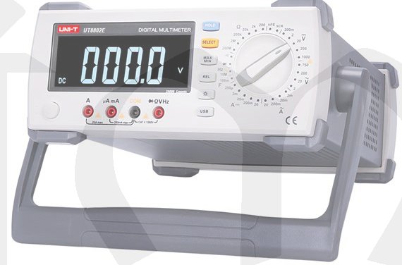 UT-8802E je stolní multimetr s ruční volbou měřeného rozsahu, zobrazitelnou hodnotou až 19 999, velkým LCD displejem s podsvícením, ochranou proti přetížení v celém rozsahu a unikátním designem. Přístroj lze použít k měření AC a DC napětí, AC a DC proudu, odporu, frekvence, kapacity, tranzistorů, hFE, diod (LED), SCR, spojitosti vedení apod.