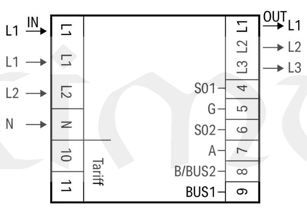 - 2x impulsní výstup SO+LED 0,1- 10.000 imp./kWh (programovatelný)