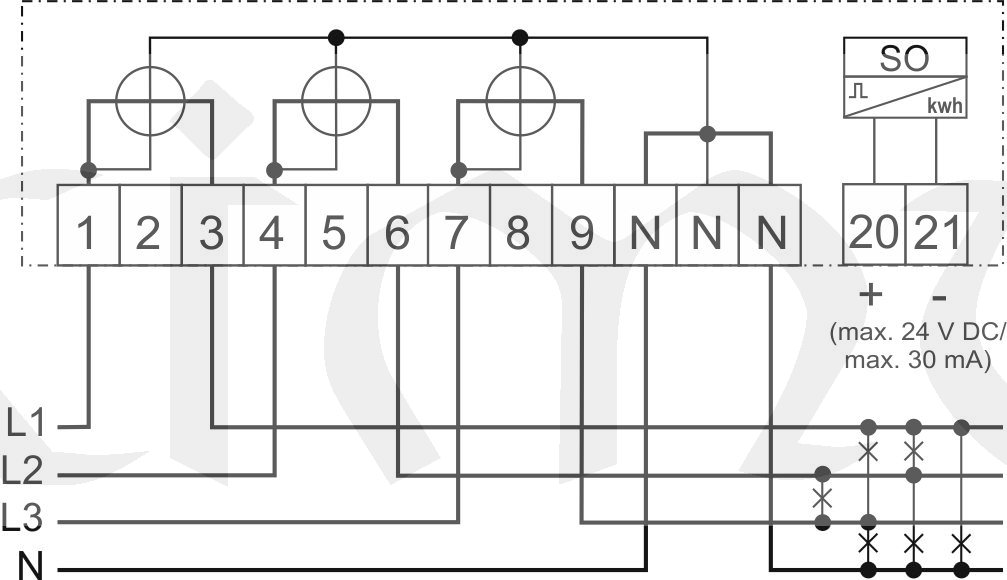 - impulsní výstup SO+LED 1600 imp./kWh (24V/30mA)