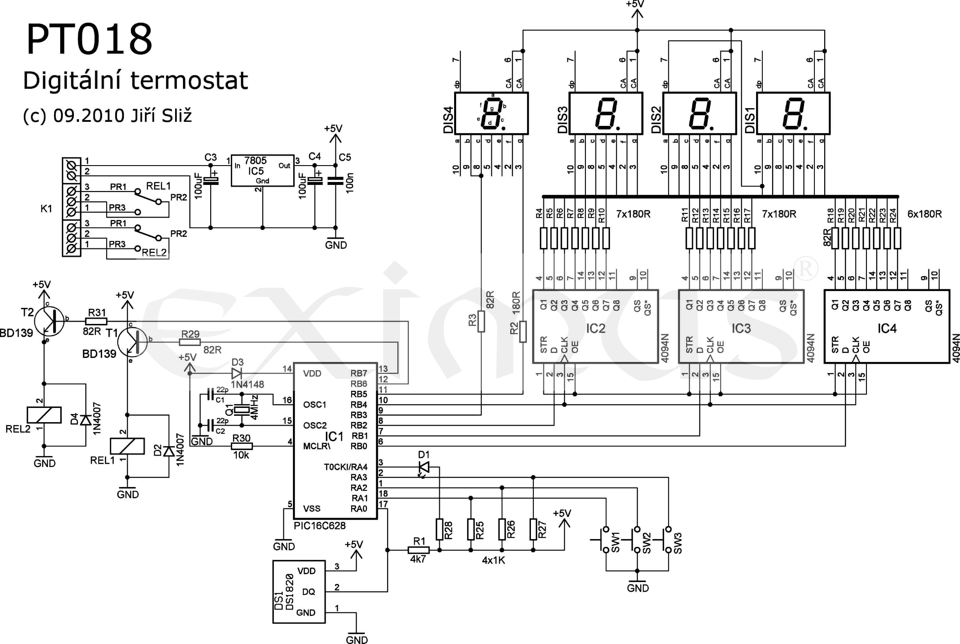 Stavebnice termostatu s digitálním teplotním čidlem od firmy Dallas.
