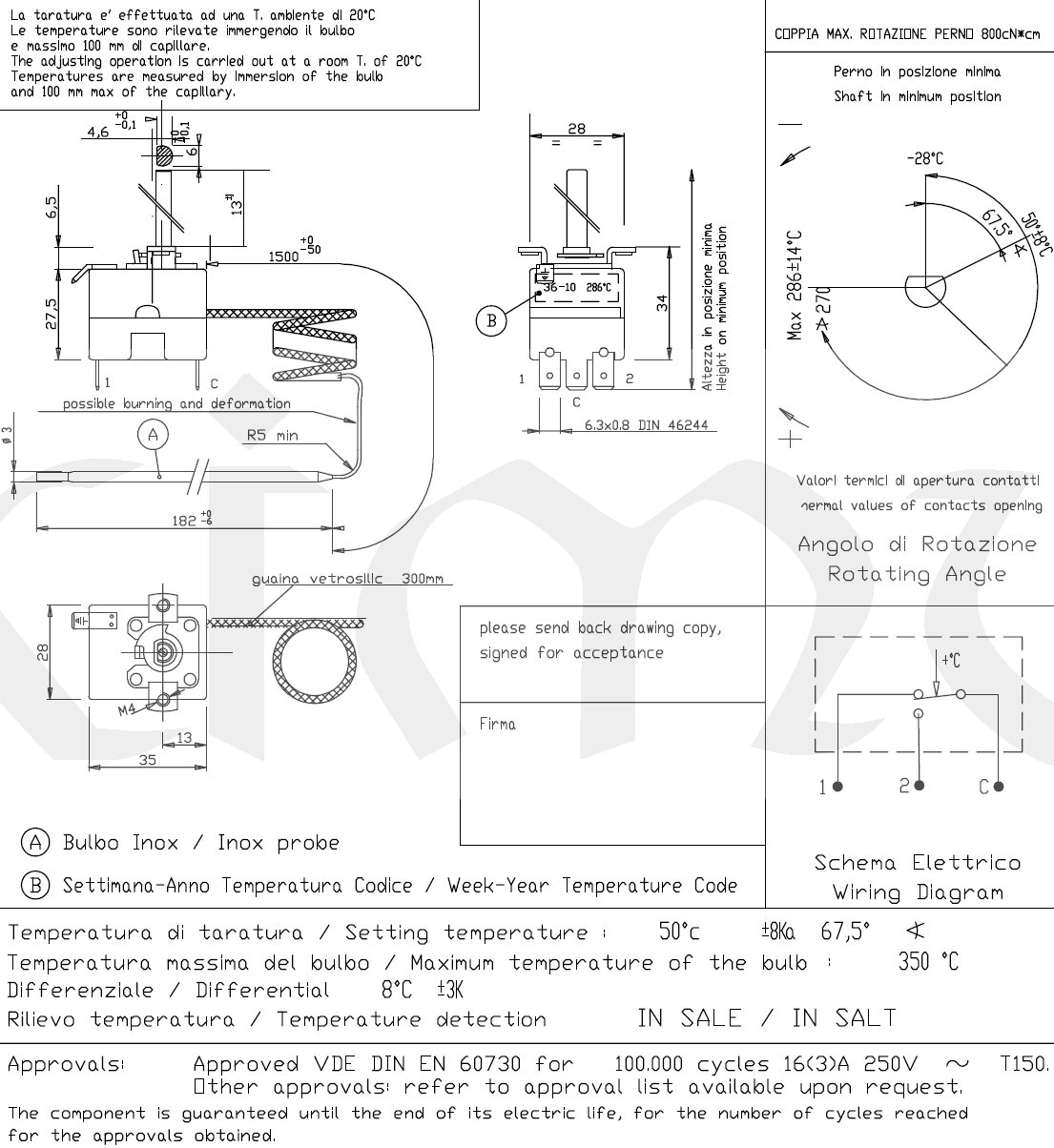 Termostat E1424, -28..+286°C; kapilára 1,5m inox, přepínací kontakt