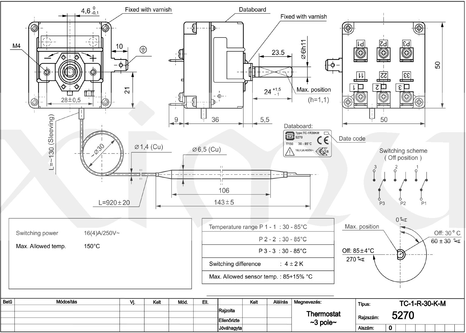 Popis, značení a rozměry všech termostatů typů řady 5270, TC-1R31KM
