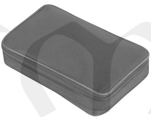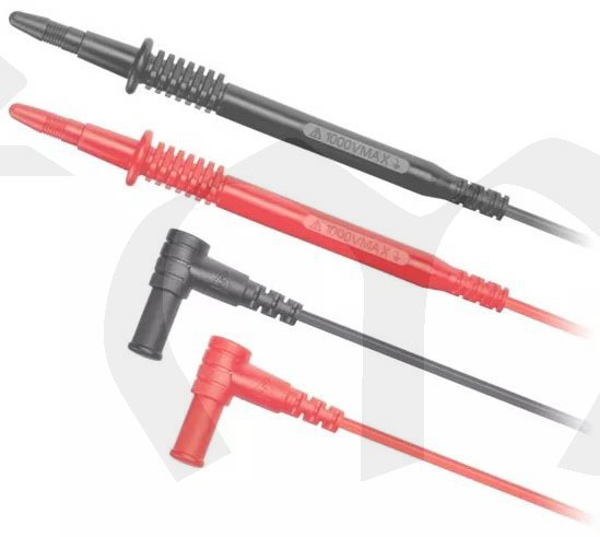 V sadě: měřič, testovací vodiče, ruční