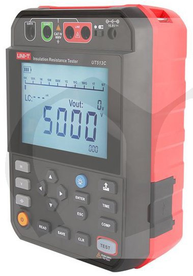 Tester izolačního odporu UT-513C 5 kV , je digitální vysokonapěťový tester izolačního odporu, navržený s několika rozsahy včetně 250 V, 500 V, 1000 V, 2500 V a 5000V. Je ideálním měřicím přístrojem pro oddělení elektrické energie, telekomunikací, meteorologie, strojovny, ropného pole, elektromechanické instalace a údržby. průmyslových a těžebních podnicích.