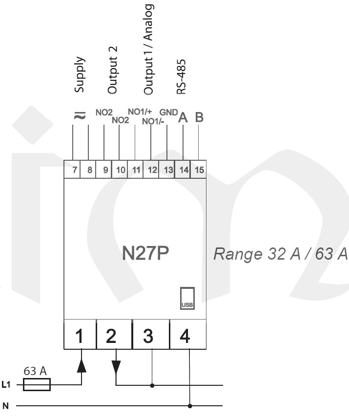 N27P-2200E0, 32/63A, analog.+1rel., RS485