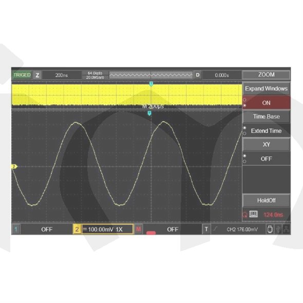 - verikální osa: 1mV/div až 20V/div (1MΩ), každý kanál má samostatné vertikální menu
