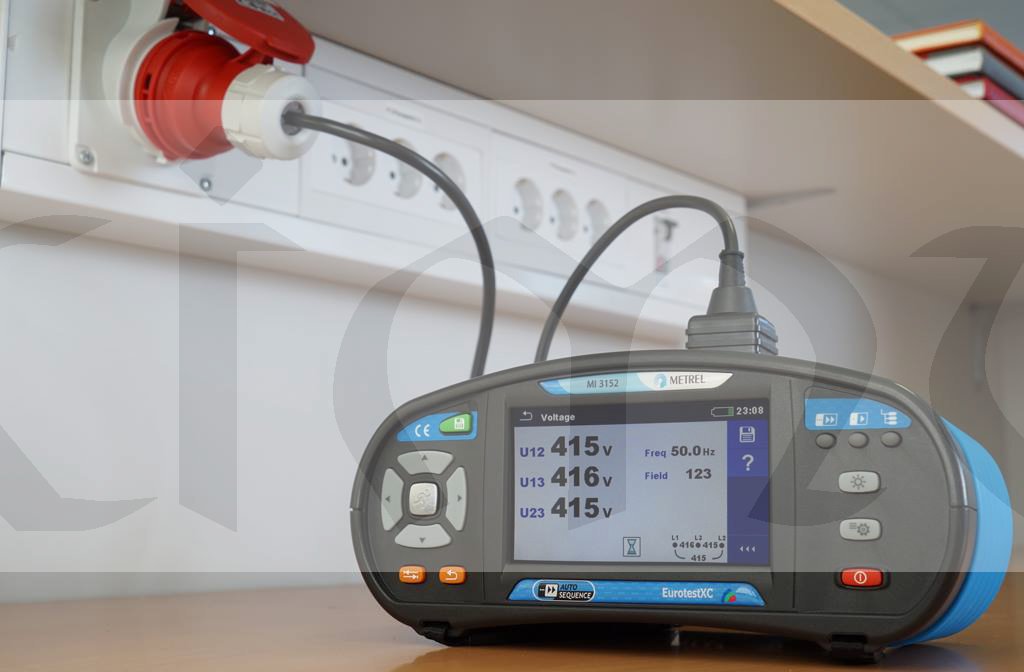 Připojovací vidlice - 16 A , 5-ti kolíková. Do konektoru pro EUROTEST je připojena jedna fáze , N a PE.