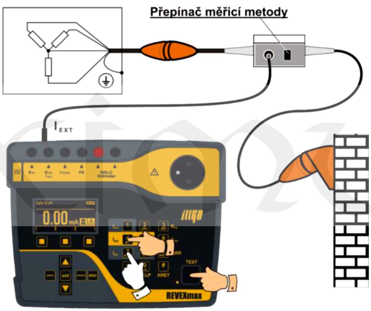 Výstup třífázového adaptéru smí být připojen pouze k měřícím přístrojům REVEX2051, REVEXplus (USB), REVEXprofi, MDtest nebo REVEXmax.