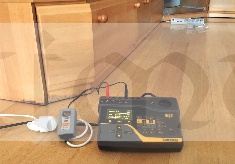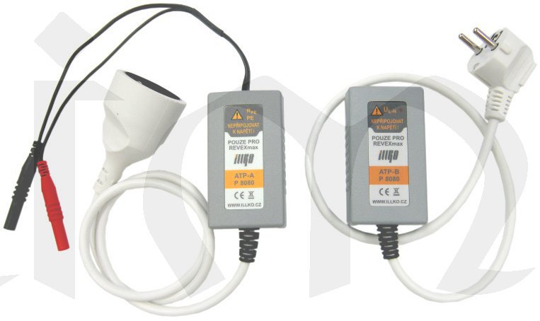 Adaptér ATP (P-8080) se sestává ze dvou částí. Přes ATP-A se k měřicímu přístroji REVEXmax připojí vidlice kontrolovaného prodlužovacího přívodu, na jehož druhém konci je do zásuvky zapojen ATP-B. Přístroj pak automaticky proměří odpory všech tří vodičů prodlužovacího přívodu a zobrazí je na displeji viz.obr.