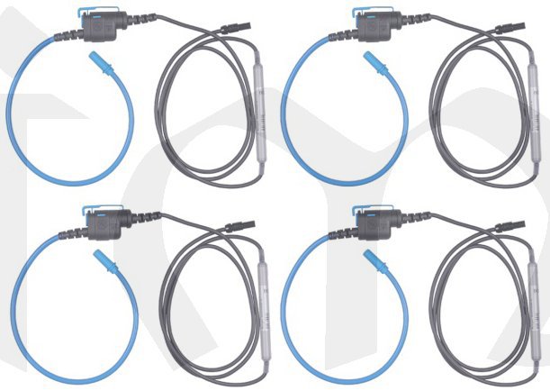 Sada 4 - jednofázových ohebných proudových sond (Rogowskiho cívka) se třemi volitelnými měřicími rozsahy.
