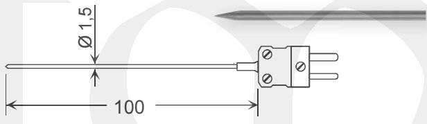 Zapichovací snímač (výměnný snímač bez kabelu) pro měkká plastická média: -65 ...+400°C Pružná zapichovací jehla pr1.5 mm z oceli V4A, konektor NST1200 Osazeno termočlánkem K