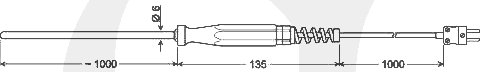 Neohebný plášťový termočlánek INCONEL pr.6 mm, L=750mm ve stonku z nerez oceli V4A,