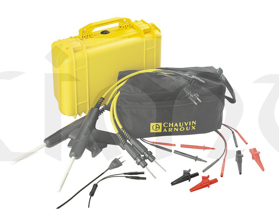 C.A 6160 - Multitester strojní zařízení Tester C.A 6160, 2 ks testovací sondy VN s kabelem 2 m, testovací kabel pro měření doby vybíjení, měřicí kabel 2,5 m, 2 ks měřicí kabel 3 m, 4 ks krokosvorky, měřicí hrot, brašna, napájecí kabel a návod k obsluze
