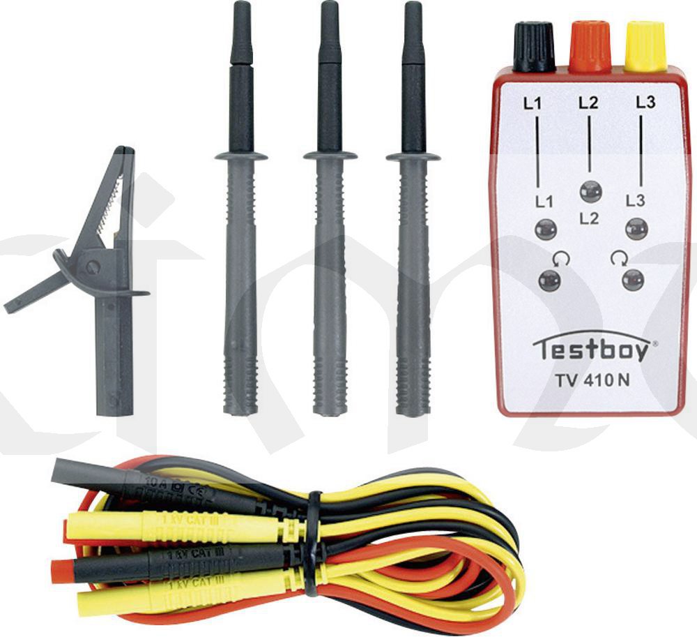 TV-410 signalizuje pěti doutnavkami přítomnost všech tří fází a na základě správného pořadí fází zjišťuje směr točivého pole. Kryt je vyroben z plastu odolného proti nárazu a prasknutí.