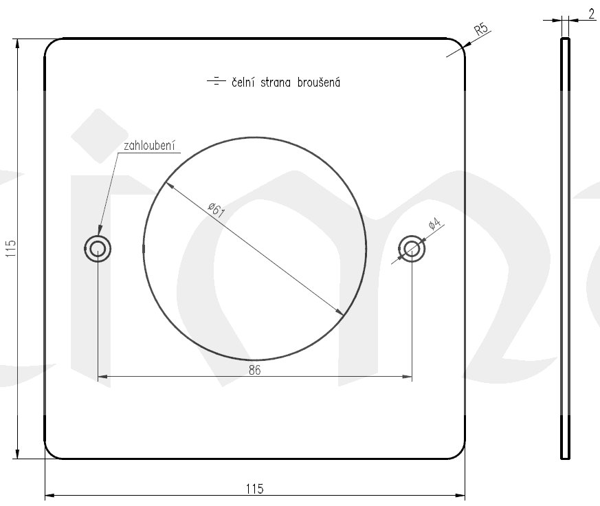 Kovová čtercová deska, plastová krabice a dvojice vrutů 3,5x35 se zápustnou hlavou (pozink).