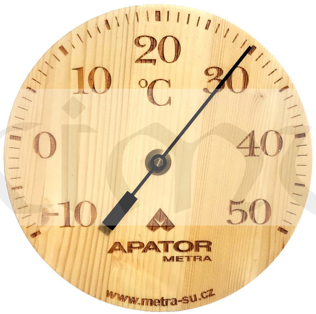 Nástěnný teploměr dřevěný kompozit s potiskem je určený pro měření teploty v interiéru.