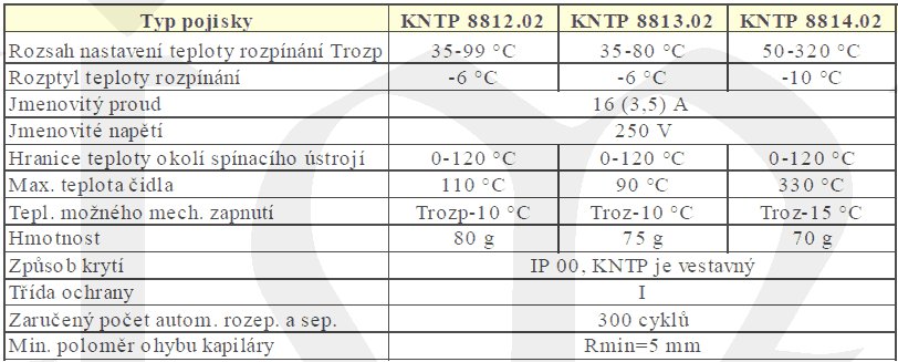 Pojistka KNTP8812.02, pevně nastavená teplota vypnutí z rozsahu +35..+99°C, nutno zadat