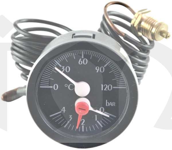 Termomanometr 0-120°C, 0-4 bar, kapilára 1 m, d=57,5 mm, černé pozadí stupnice