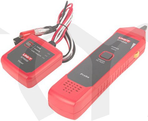 UT 682D - tester kabelů nabízí jednoduchý způsob, jak rychle najít a identifikovat kabely, dráty a svazky kabelů. Připojte přístroj ke kabelu a poté sledujte kabel a signál s pomocí sondy. Přístroj také může být použito k testování spojitosti vedení a polarity na telefonních linkách.