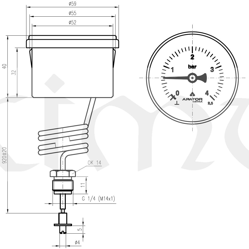 Kapilární tlakoměr MCS60 0-4bar, M14x1