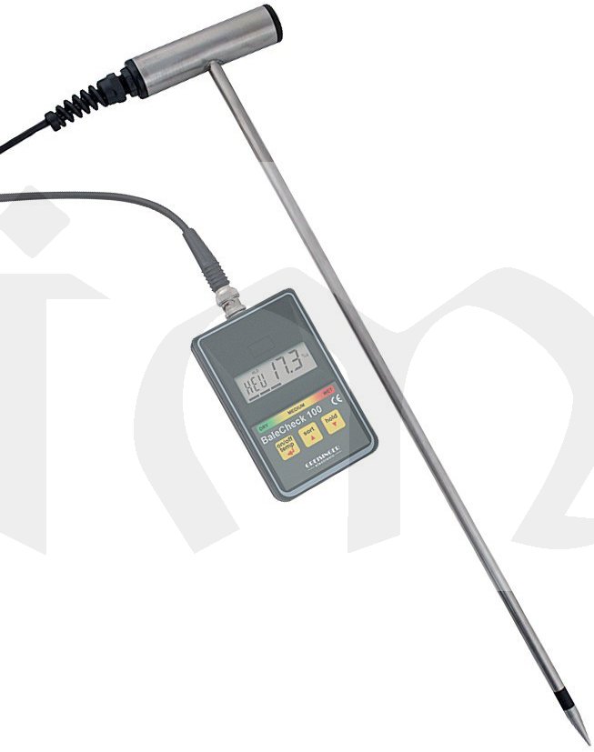 Profesionální sada pro určení vlhkosti plodiny a balíků sena. Digitální vlhkoměr BaleCheck 100 má robustní měřící sondu, která je vyrobená z nerezu a je dlouhá cca 600mm o průměru cca 10mm. Konstrukce sondy umožňuje snadnou aplikaci. Pro spojení s přístrojem kabel dlouhý 1m s konektorem BNC.