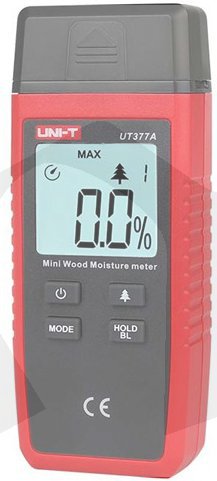 UT-377A je digitální měřič vlhkosti dřeva a lze jej také použít pro měření obsahu vody v papíru, překližkách, některých dřevotřískách, a jiných dřevitých materiálech. Přístroj dělí dřevo do čtyř kategorií na základě jeho hustoty a za pomocí algoritmu teplotní kompenzace zajistí velmi přesný výsledek měření. Malé rozměry přístroje, nízká spotřeba a vysoká přesnost dělá UT 377A skvělou volbou pro měření vlhkosti dřeva.