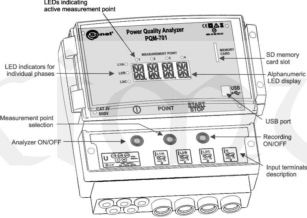 Parametry analyzátoru PQM-701: