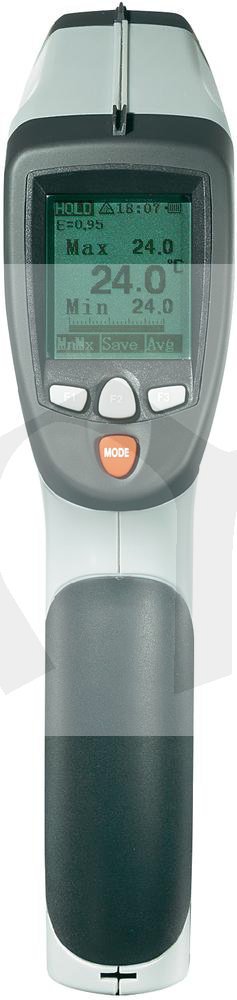 Bezkontaktní teploměr IR1200-50D USB má špičkovou výbavu a je díky krytu z měkké pryže velmi robustní. Důraz je u této série kladen obzvláště na rychlou odezvu, velkou oblast měření, výbornou přesnost i na dvojitý laser se zaměřovačem. Navíc mohou být měřeny teploty přes externí čidlo typu K (termočlánek).