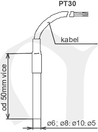 Kabelový teploměr rozměrové řady PT 30, osazený čidlem Pt100/B,