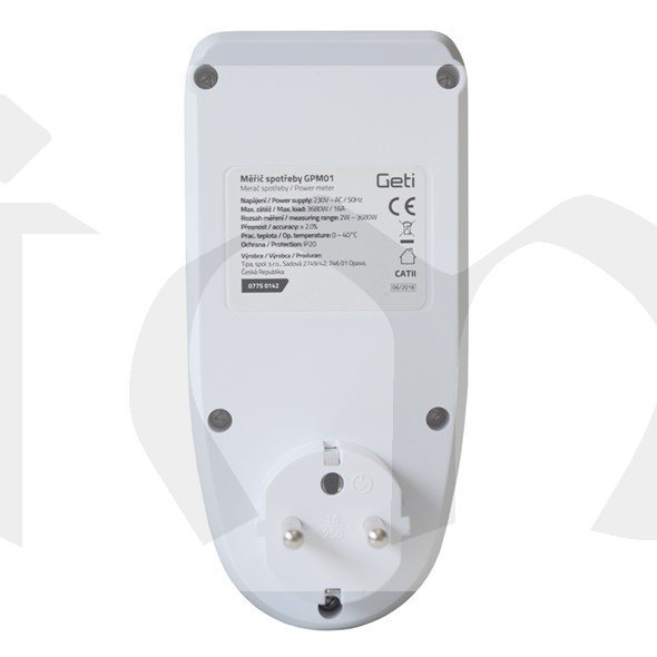 Měřič Geti GPM 01 s rozšířeným designem slouží k měření spotřeby elektrické energie různých domácích spotřebičů, dokáže vypočítat odpovídající finanční náklady, kalkulovat emise CO2 za spotřebovanou energii, a poskytuje souhrnné informace o spotřebě i v dlouhodobém časovém rozpětí, včetně počítání celkové doby měření. Tyto informace Vám mohou přispět ke snížení nákladů za elektrickou energii. Ačkoliv měřič obsahuje celou řadu nastavitelných funkcí a zobrazitelných informací, jeho ovládání je snadné a displej je velmi přehledný.