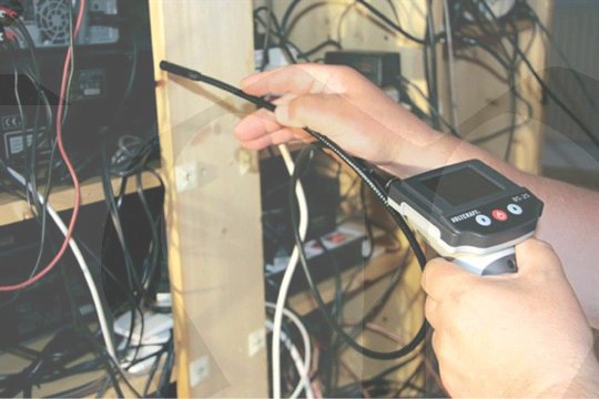 S endoskopem ( boroskopem , inspekční kamerou ) s barevnou kamerou BS-25 snadno sami prozkoumáte těžko přístupná místa a uděláte si o všem přesný obrázek. Díky 88 cm dlouhému husímu krku zjistíte, zda nejsou např. trubky a vedení v domě nebo nebo dutiny v autě poškozeny korozí. Stmívatelné LED světlo kamery zajišťuje optimální osvětlení. Endoskop je vhodný pro domácí kutily, modeláře nebo biology, např. na prohledávání zvířecích úkrytů, chodeb krtků nebo ptačích budek. Není vhodný pro lékařské účely! Akumulátory nejsou součástí dodávky.