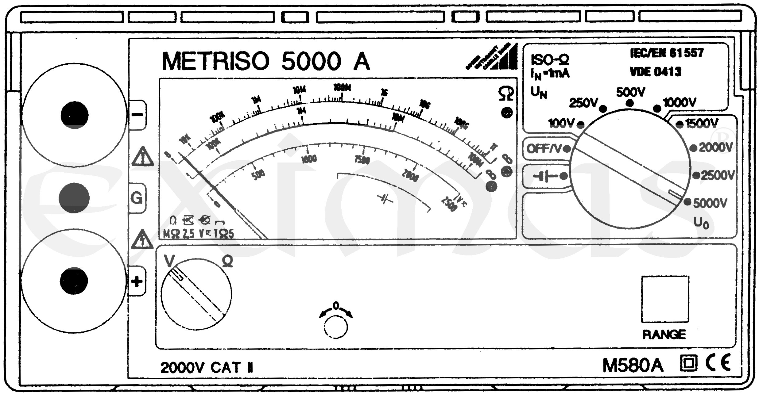 Vysokonapěťový přístroj pro měření izolačních odporů Metriso 5000A odpovídá předpisům IEC 61557 / EN 61557/ VDE 0413 část 2. Tento přístroj je vhodný ke zjišťování izolačního odporu ve stavu bez napětí v elektrických zařízeních s napětím do 1000 V. Stejně tak je vhodný k měření izolačních odporů až 1 Tohm, s napětím naprázdno do 5000 V. Přístroj je mimo tato měření vybaven možností měření napětí v rozsahu do 2000 V pro stejnosměrná i střídavá napětí. Tím mohou být zvláště výhodně zkoušeny objekty (zařízení) na stav bez napětí a objekty (zařízení) kapacitního charakteru.