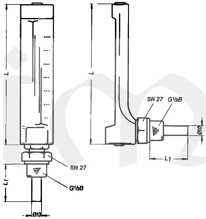 Teploměr úhlový T0206 0..+200°C/200x36mm, 63mm, G1/2"