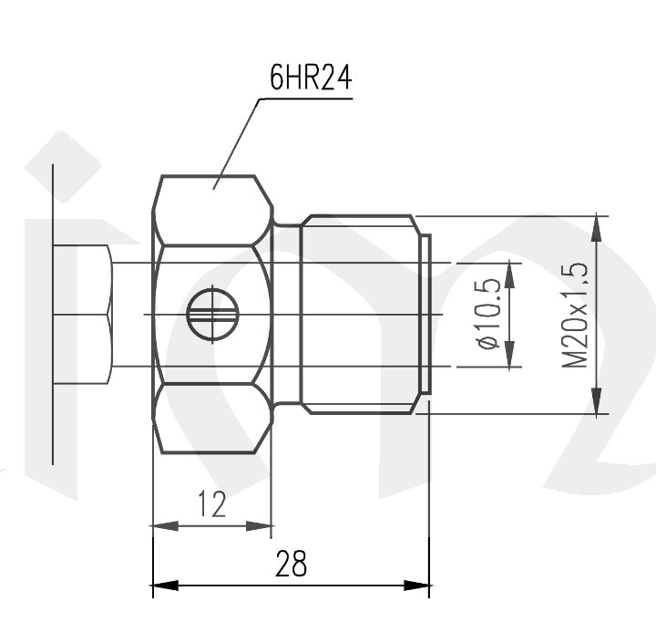 Posuvné závitové hrdlo M20x1.5 ; d=10.5mm, ocel lakovaná