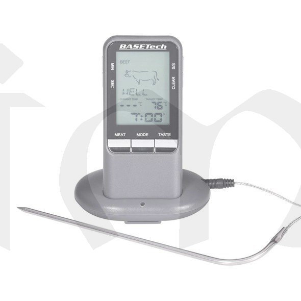 Bezdrátový grilovací teploměr umožňuje spolehlivé měření a sledování teploty ve středu opékaného masa a pochutin. Vpichovací čidlo se umístí do středu pečeného pokrmu. Možnost nastavení alarmu při dosažení požadovaného stupně propečení pro různé druhy masa jako je hovězí, telecí, jehněčí, vepřové, krocaní, kuřecí, ryby nebo hamburgery. Přijímač a vysílač jsou propojeny bezdrátově, takže během vaření můžete mít přijímač neustále u sebe bez omezení pohybu.