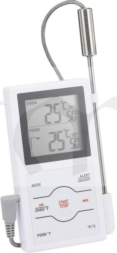 Teploměr je opatřen senzorem, který dokáže měřit teplotu uvnitř i na povrchu jídla.